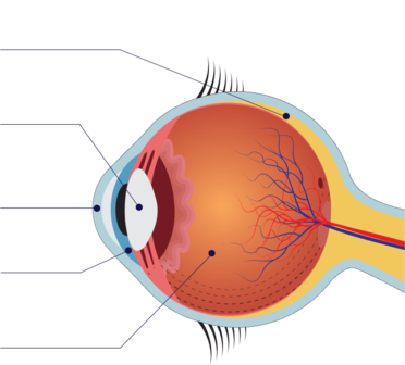Il corpo vitreo, la base dell'occhio diventa più liquida e si separa dalla retina: ciò si esprime con le miodesopsie che fluttuano davanti agli occhi.